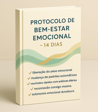 O Protocolo de Cura Emocional – 14 Dias é um processo guiado que te toma pela mão e te acompanha passo a passo para liberar emoções acumuladas e recuperar leveza e paz interior.