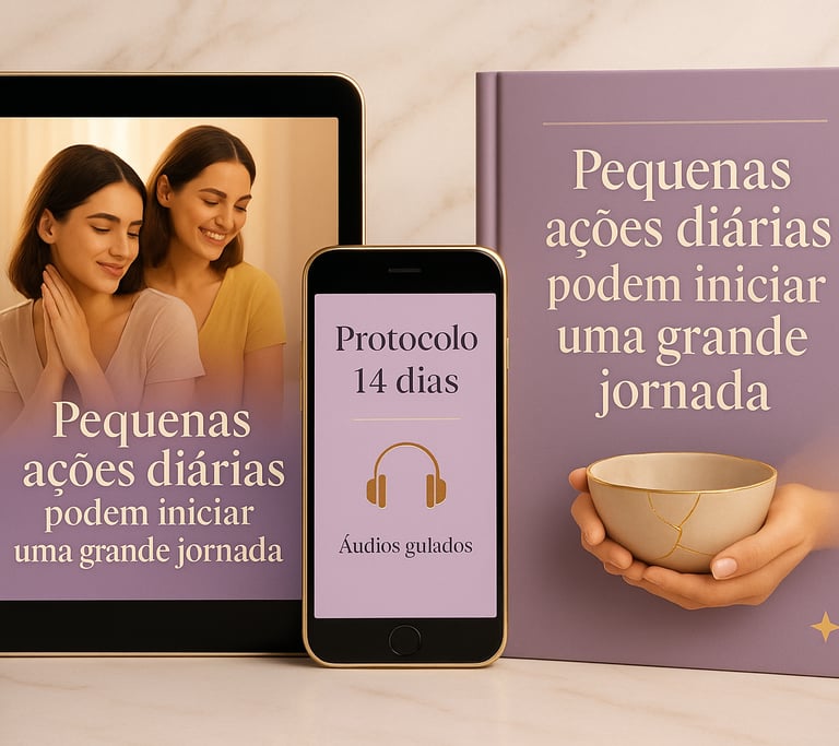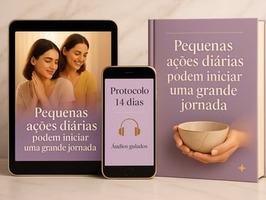 O Protocolo de Cura Emocional – 14 Dias é um processo guiado que te toma pela mão e te acompanha passo a passo para liberar emoções acumuladas e recuperar leveza e paz interior.